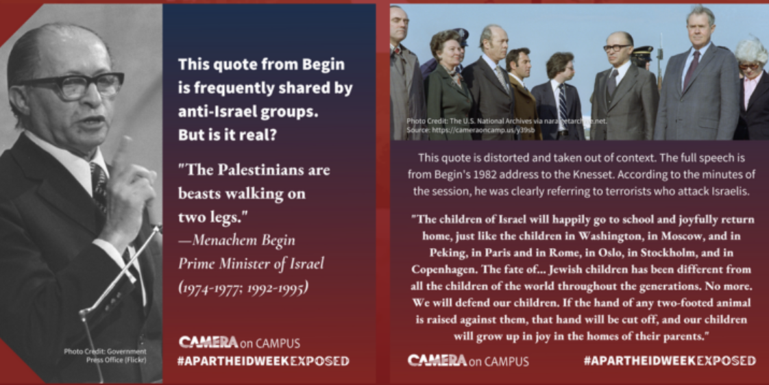Time and time again, CAMERA on Campus has exposed SJP and its affiliates. Last spring, we published a campaign website dedicated to debunking the antisemitic propaganda the groups disseminate.